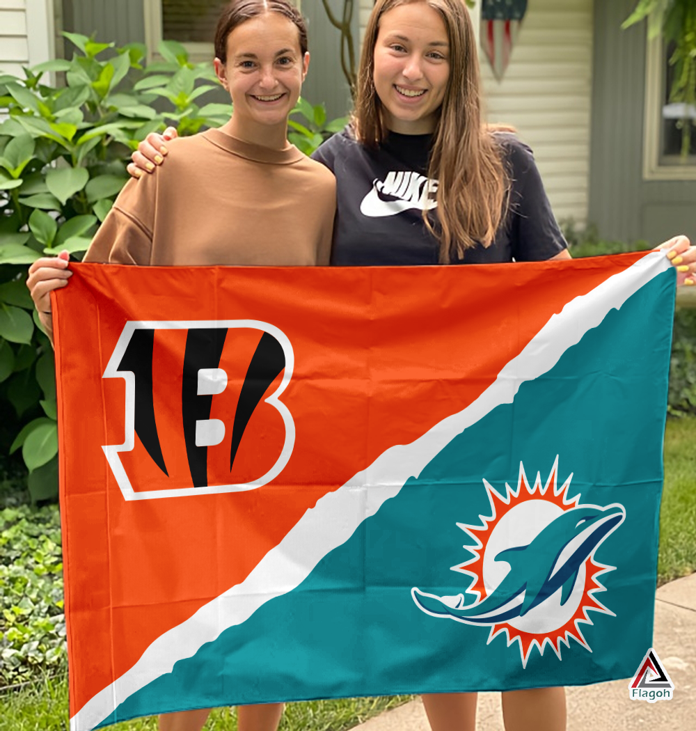Bengals vs Dolphins House Divided Flag, NFL House Divided Flag
