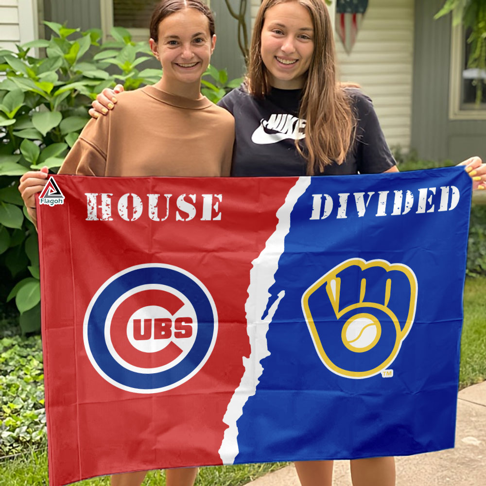 Cubs vs Brewers House Divided Flag, MLB House Divided Flag