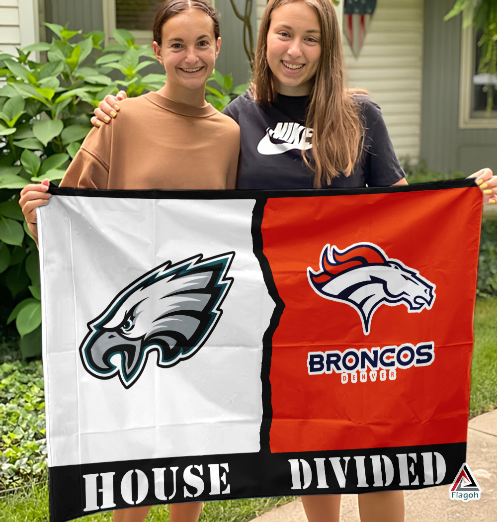 Eagles vs Broncos House Divided Flag, NFL House Divided Flag