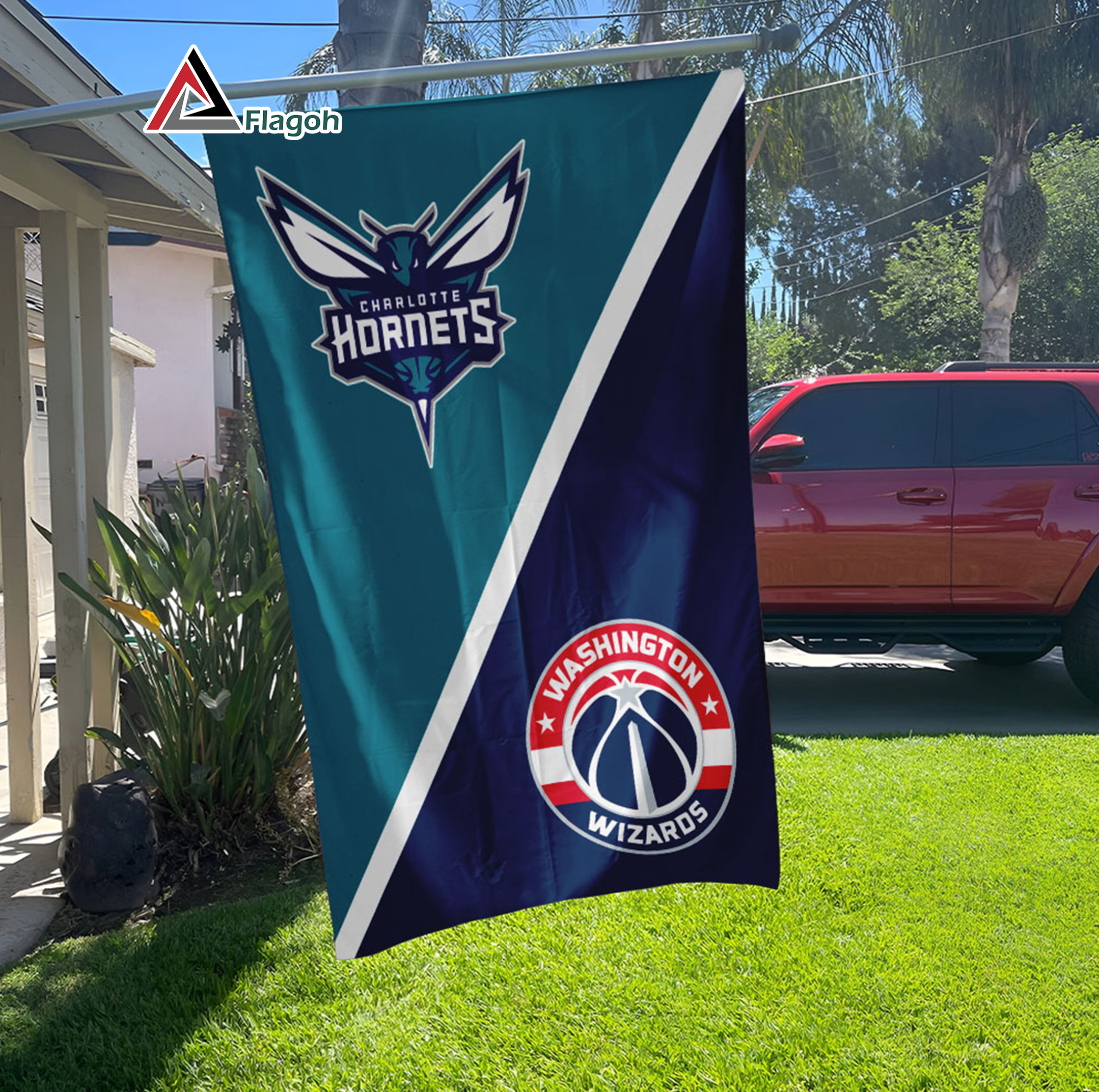 Hornets vs Wizards House Divided Flag, NBA House Divided Flag
