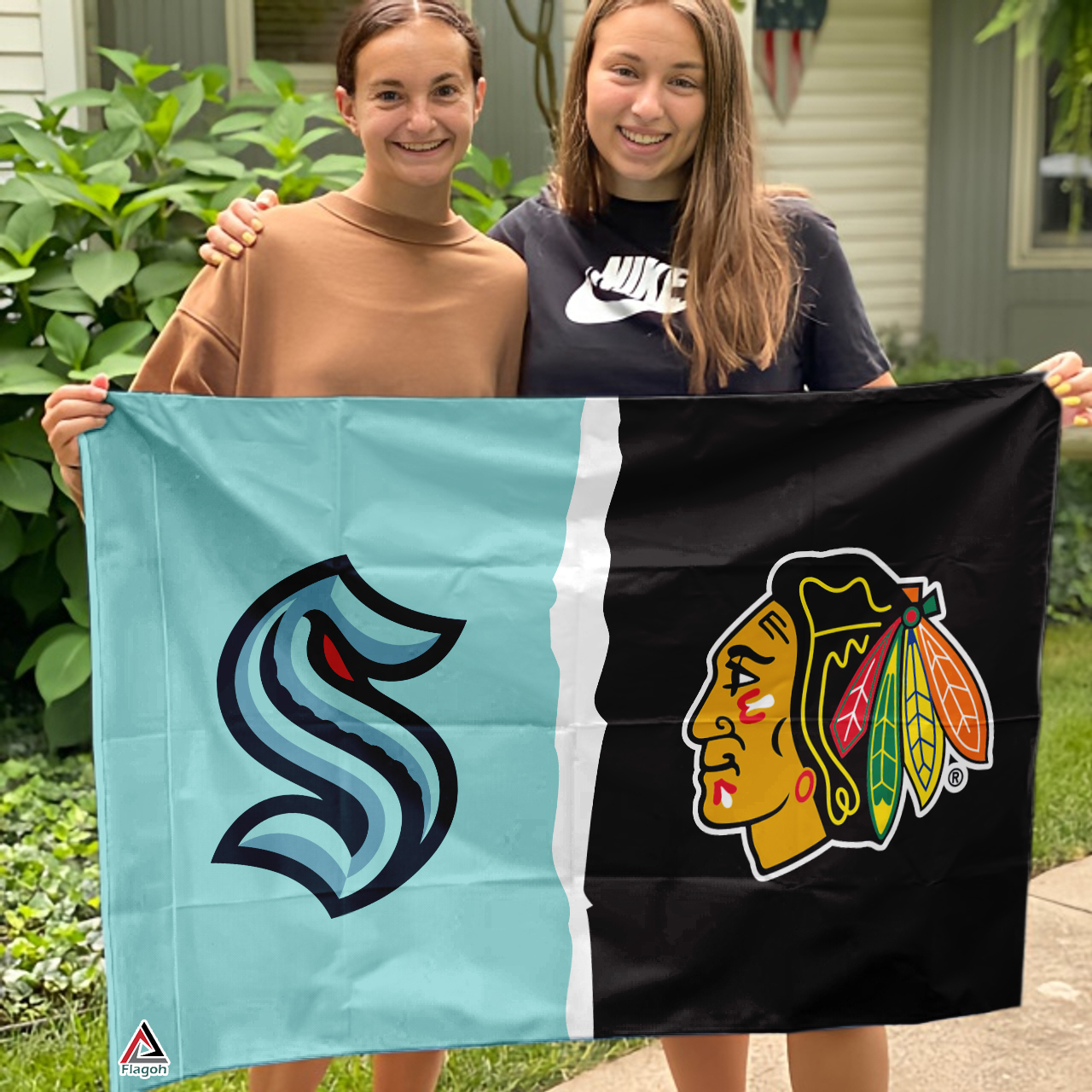 Kraken vs Blackhawks House Divided Flag, NHL House Divided Flag