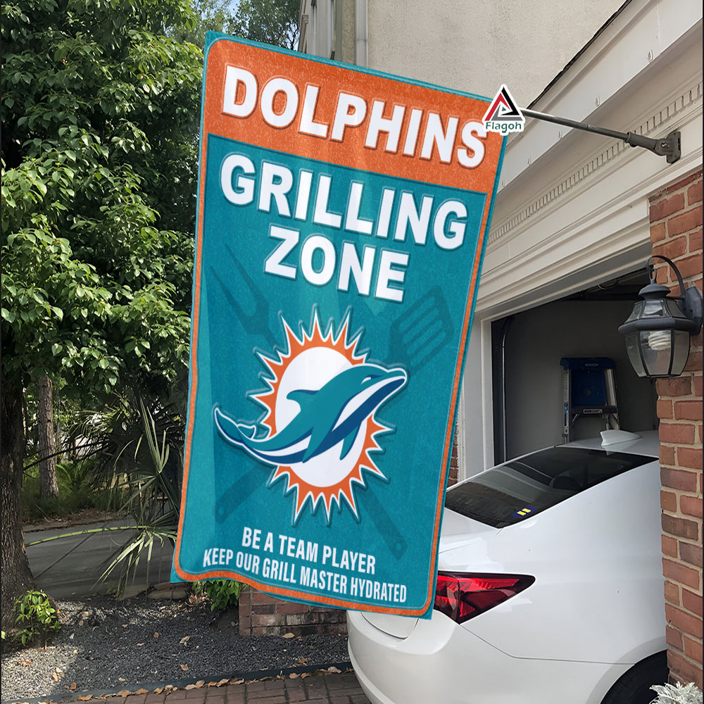 Miami Dolphins Grilling Zone Flag, Dolphins Football Fans BBQ Flag